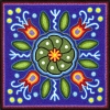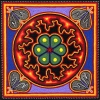 Huichol yarn painting from Nayarit area of Mexico. 7.9 x 7.9" (20 x 20 cm),yarn on wood applied with beeswax and resin. Description on back. Signed by artist.
